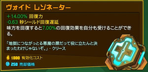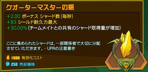 | | ボーナスシャード数(毎秒) | (シールドがゼロになっている間) | クールダウン時間 |