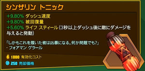 | | ダッシュ速度 | (すべてのスキルがクールダウンしている間) | 回復力 |