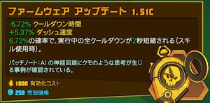 | | シールド回復(毎秒) | 構造物を購入してから30秒間 | ダッシュ速度 |
