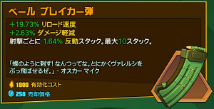 | | ダメージ軽減(減少) | (リロード完了から5秒間) | 攻撃速度 |