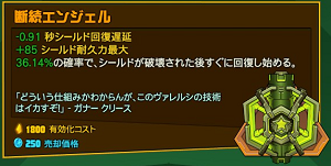 | レア | ダメージ軽減(減少) | | (秒)シールド回復遅延(/秒) |
